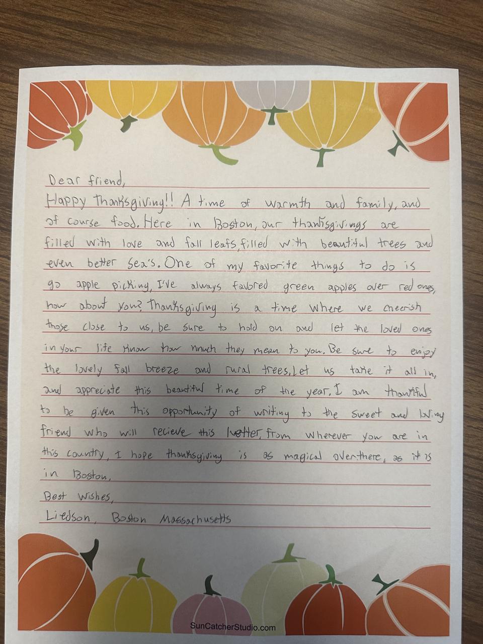 Thanksgiving Letter Writing