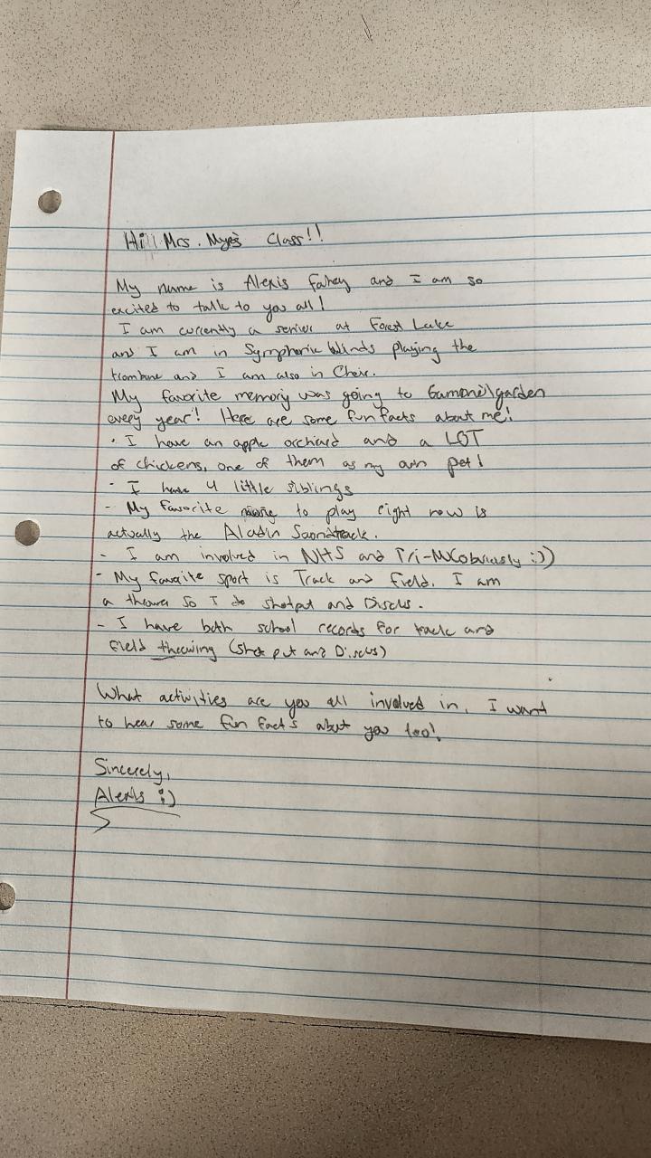 September Pen Pal Letter