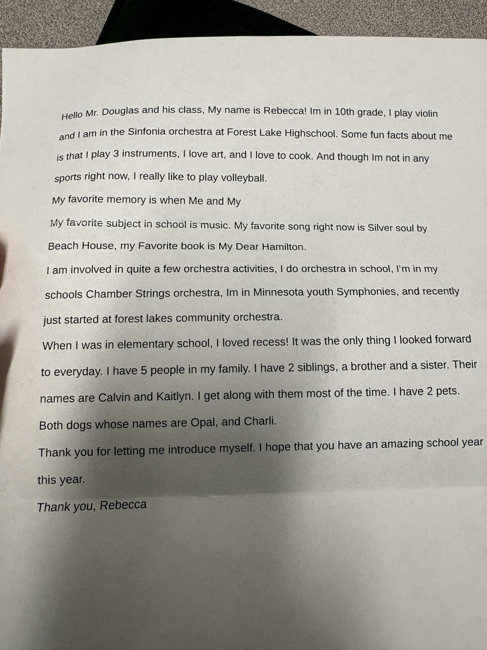 September Pen Pal Letter