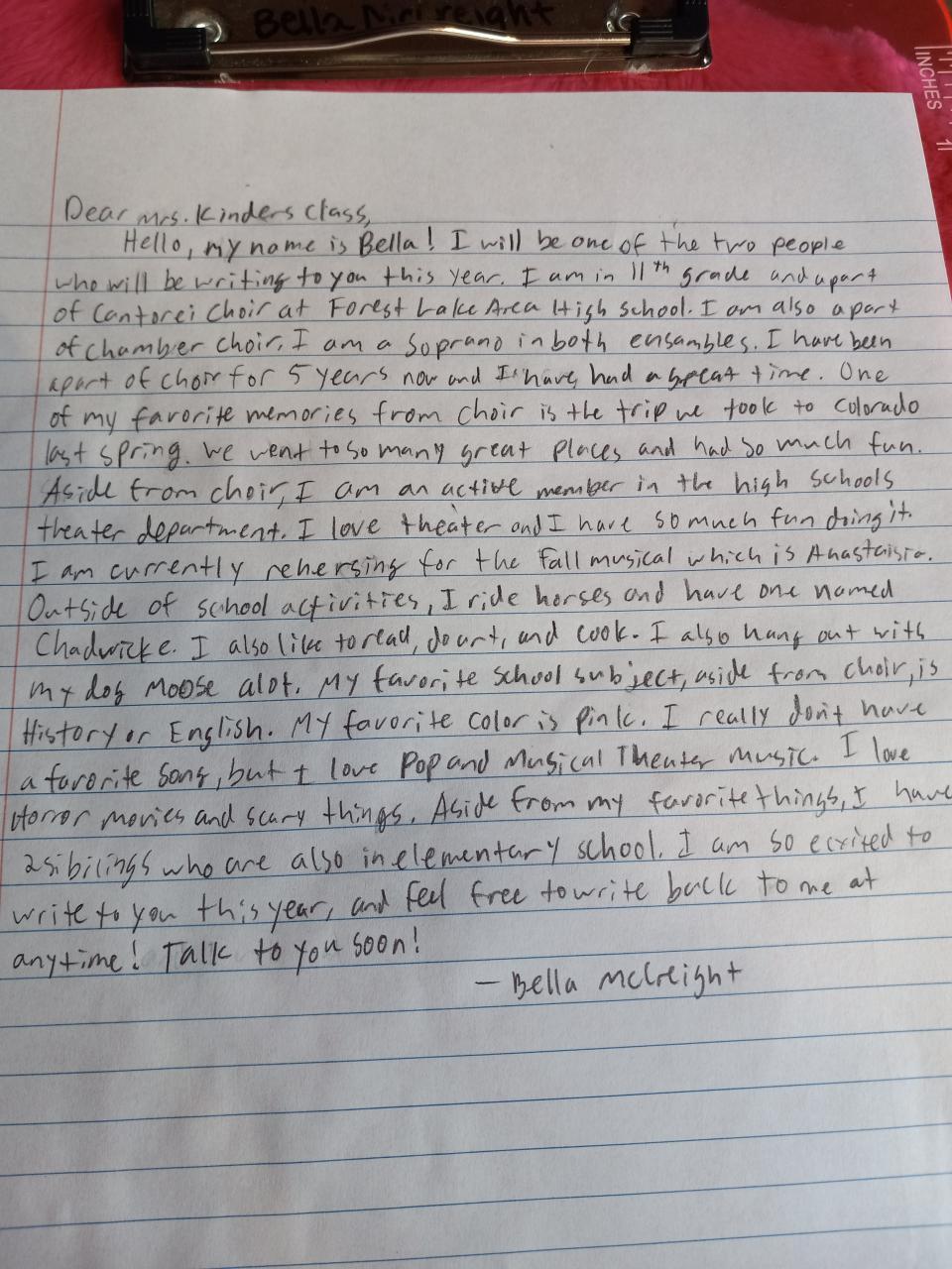 September Pen Pal Letter
