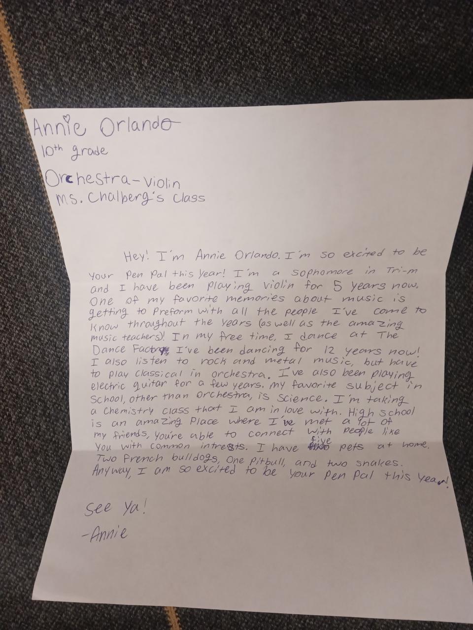 Tri-M Music Honor Society » September Pen Pal Letter