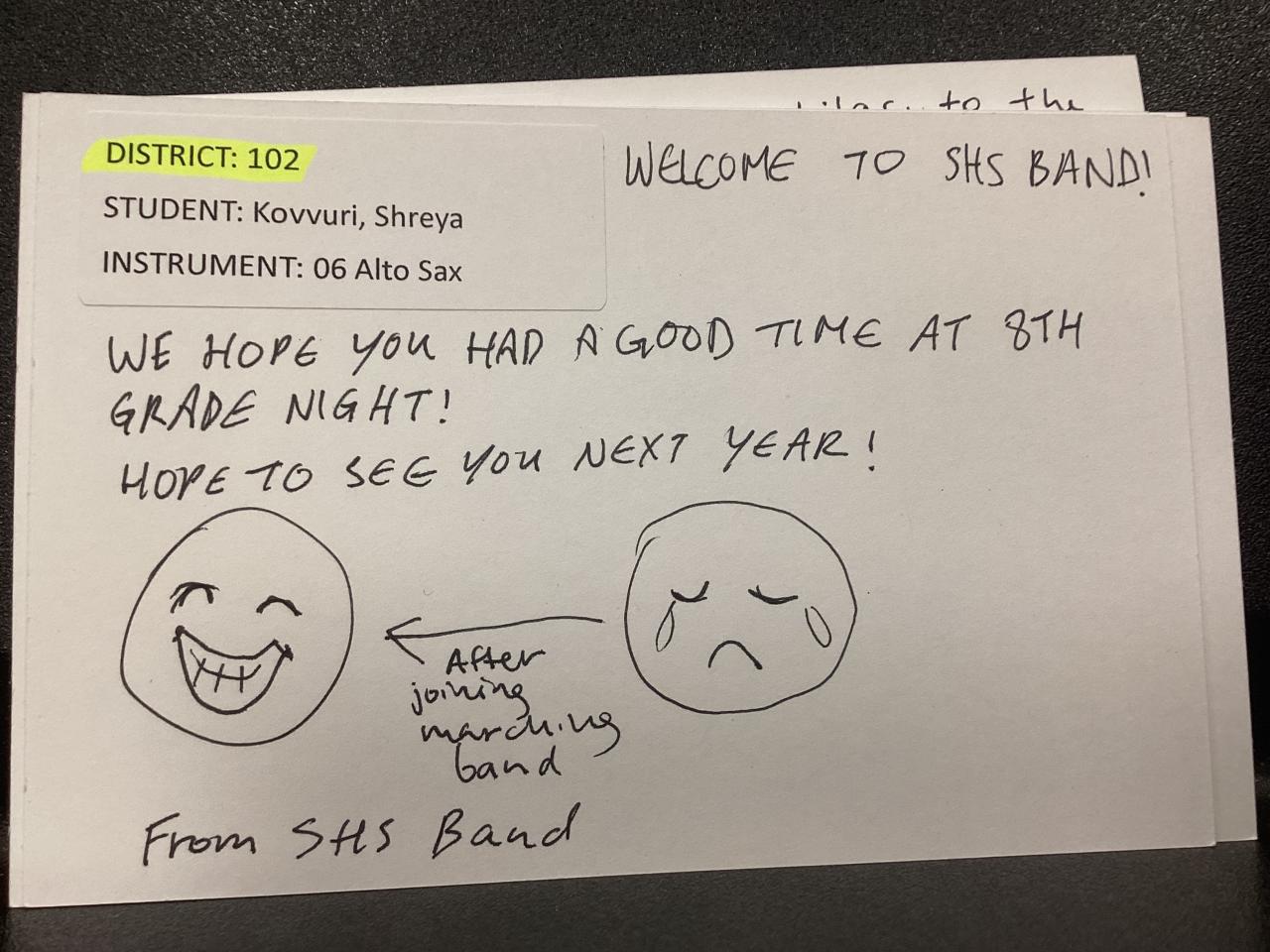 8th Grade Night Thank You Card Writing