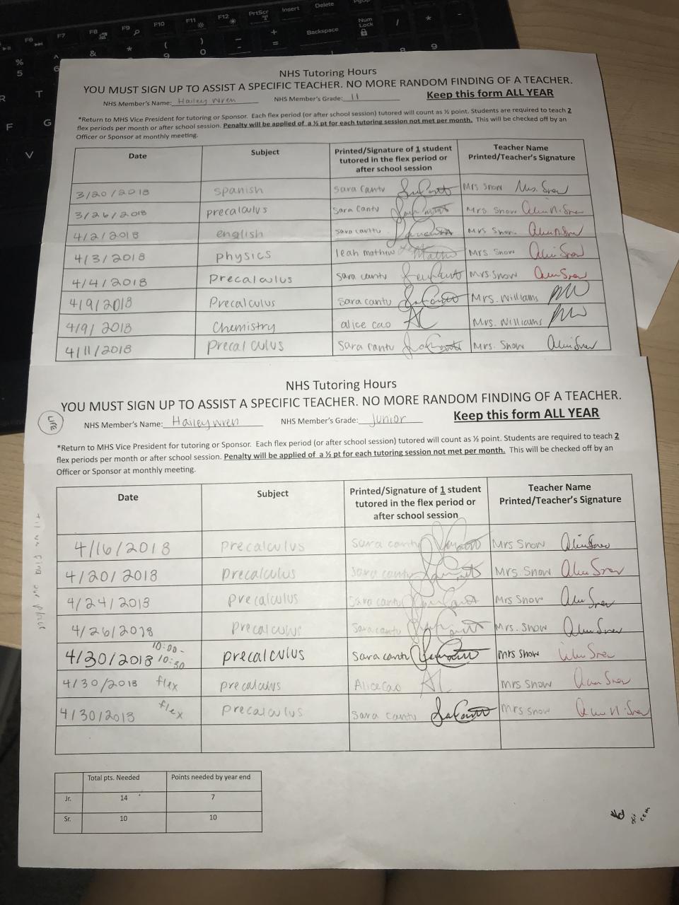 2017-2018 Juniors Tutoring - 7 hours needed