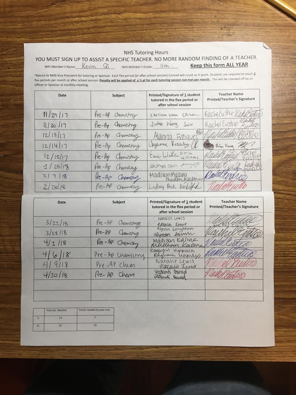 2017-2018 Juniors Tutoring - 7 hours needed