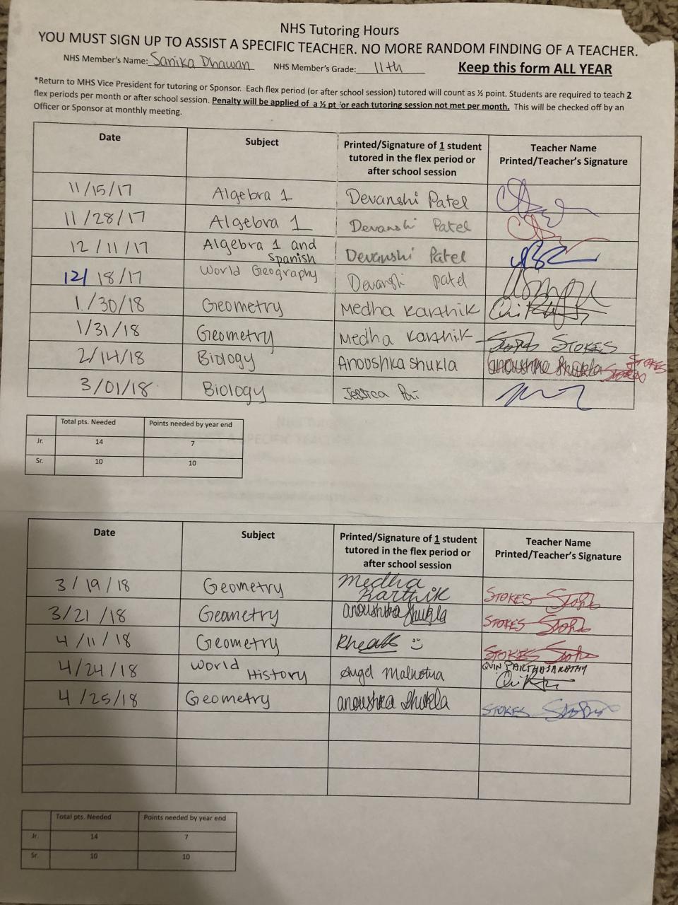 2017-2018 Juniors Tutoring - 7 hours needed
