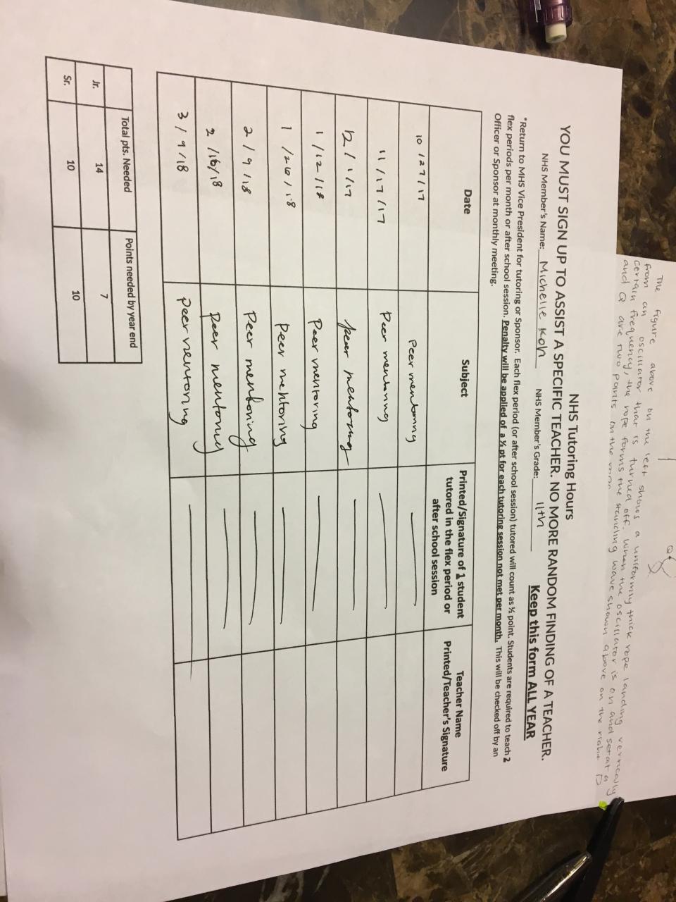 2017-2018 Juniors Tutoring - 7 hours needed