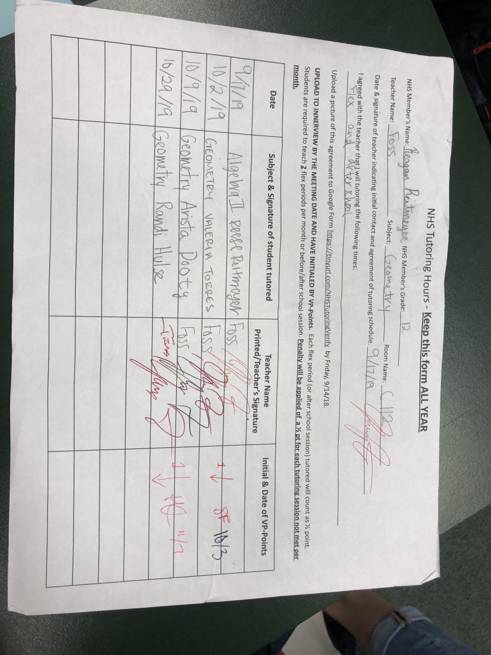 2019-2020 November Tutoring Requirement