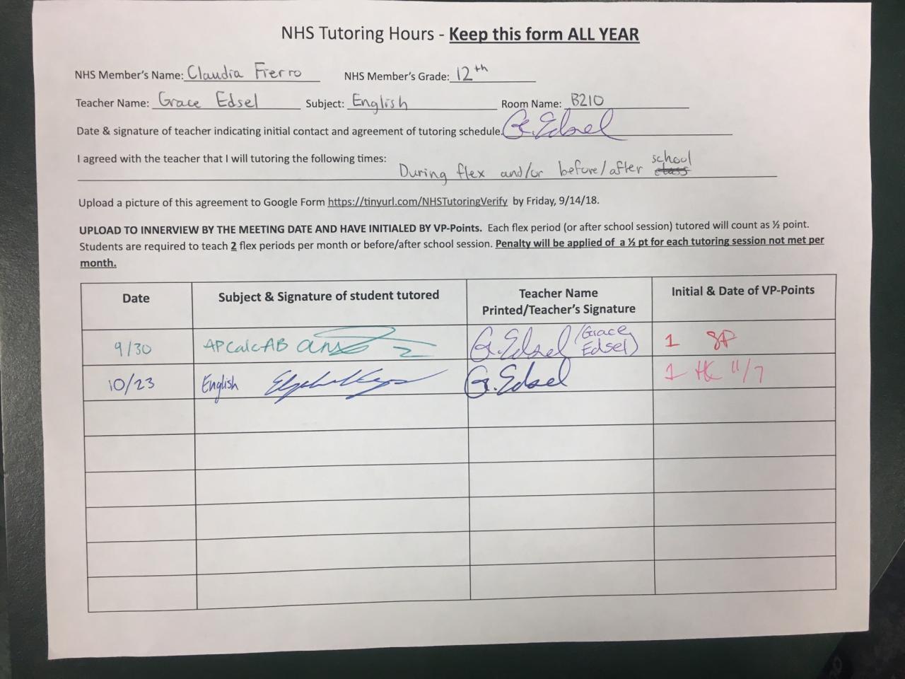 2019-2020 November Tutoring Requirement