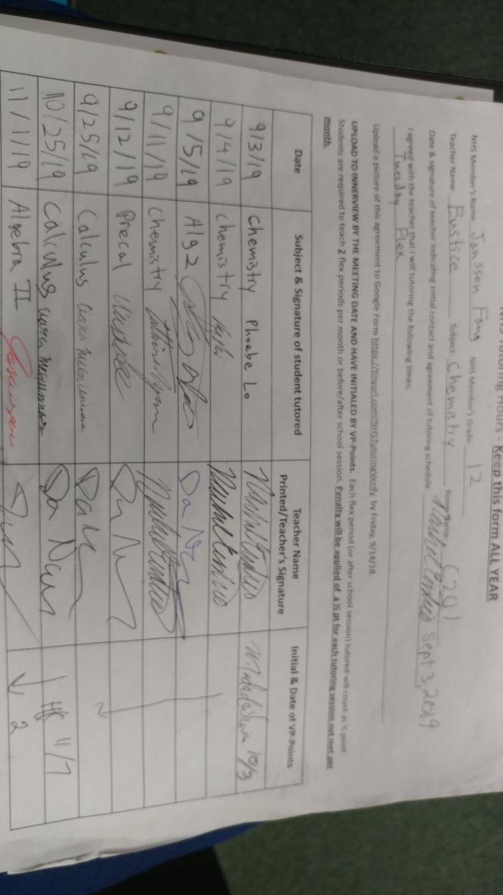 2019-2020 November Tutoring Requirement