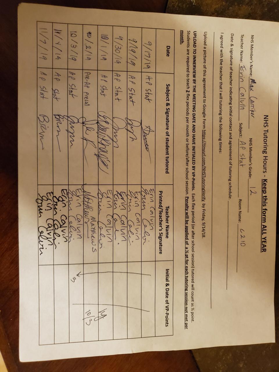 2019-2020 November Tutoring Requirement