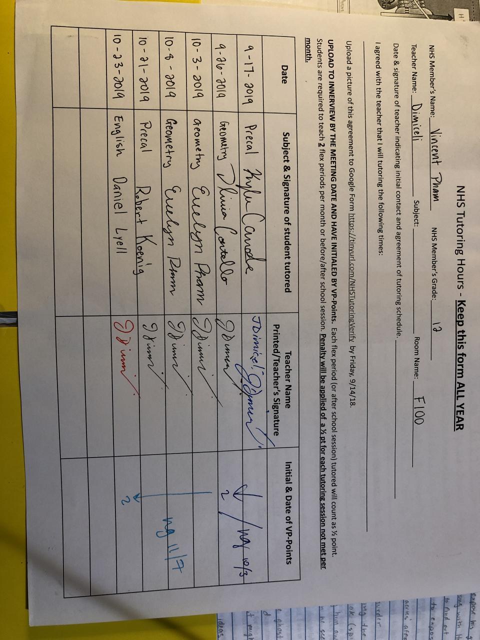 2019-2020 November Tutoring Requirement
