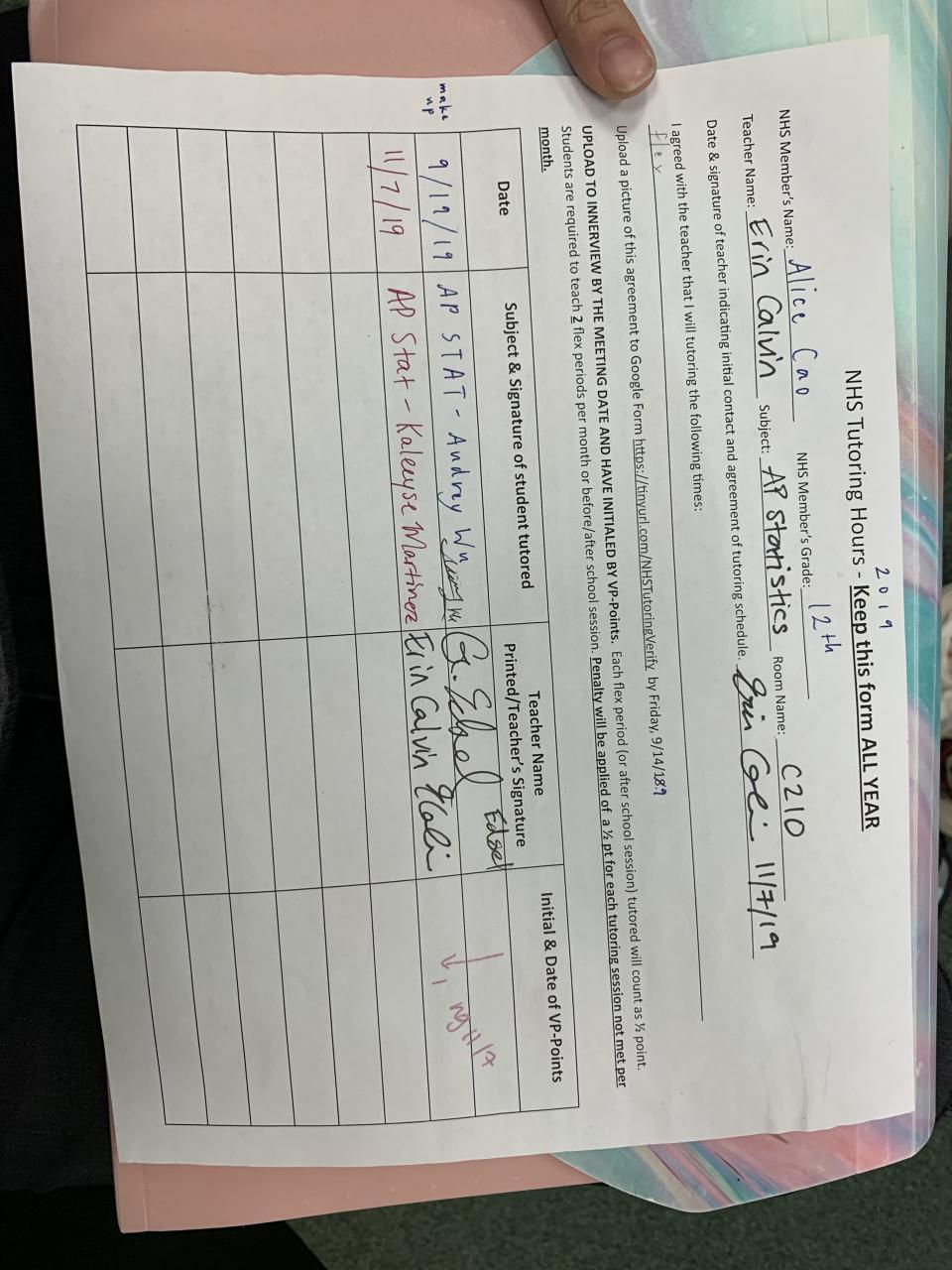 2019-2020 November Tutoring Requirement
