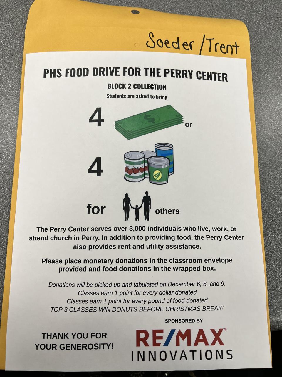 $4 or 4 cans for Holiday Food Drive