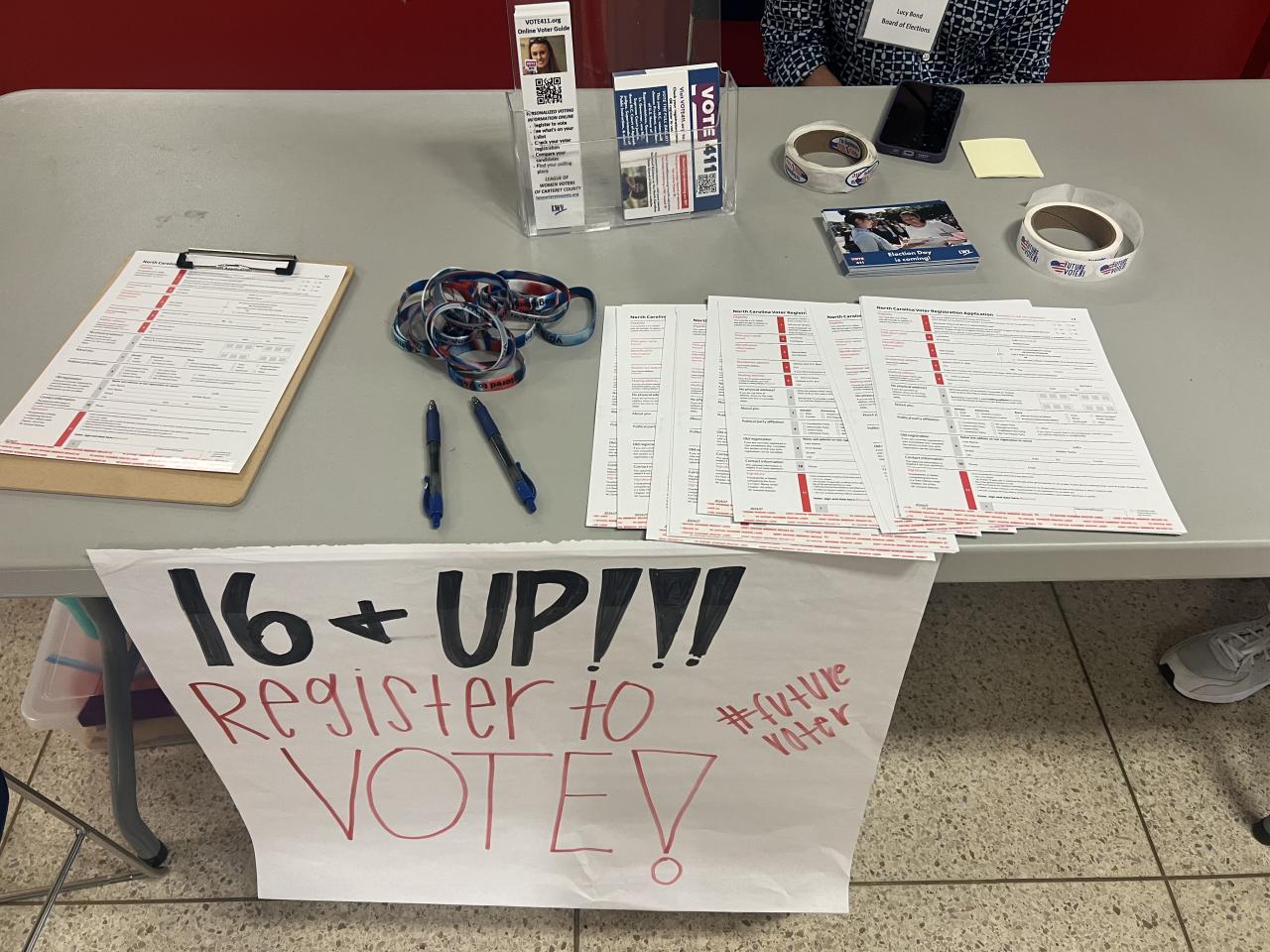 I initiated a drive in which kids age 16 and up we’re able to come and register to vote. I had registration ballots out and kids would come fill them out during their free periods or during lunch.