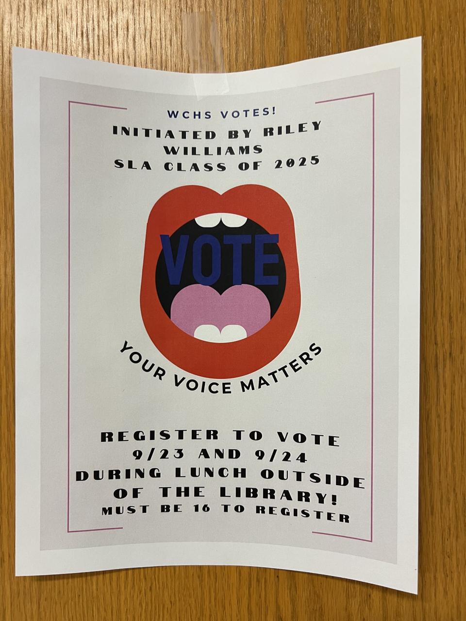 I made flyers for my event and put them all around the school so that kids were able to be educated on the fact that the event was happening and be prepared to register to vote.